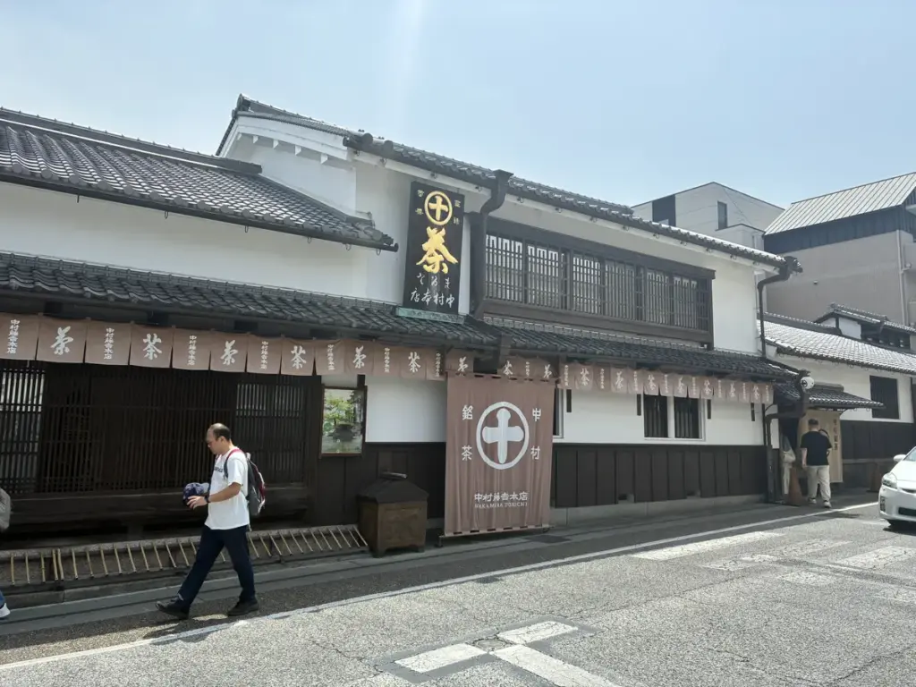 突き当りまで進むと、中村藤吉本店が見えてきます。そうしたら、左へと曲がります。